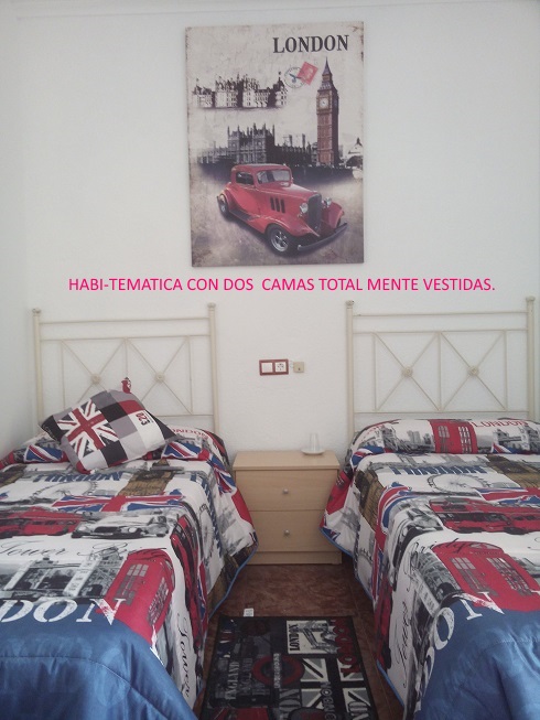 Habitaciòn tematica con dos camas, equipada con baño, agua caliente, televisiòn, wifi y aire acondicionado opcional, en nuestras instalaciones podra disponer tambien de la cocina totalmente equipada, barbacoa casera, salon comedor y terraza ,tambien podran disponer de lavadora.
